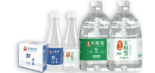 水質:黃山無極雪水源為地下裂隙流動活水,富含鍶、偏硅酸、鈣鎂離子、碳酸氫根、硫酸根,呈天然弱堿性和小分子團的特征,重金屬和污染物等限量指標遠低于礦泉水成品的限量值,并有低鉀鈉、低氯離子、低溴酸鹽、色度和渾濁度堪比凈水、菌落總數極低的特性,為稀有的利于人體健康的優質礦泉水水源。
